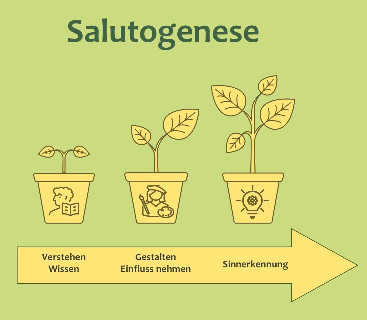 Die Kurse & Ausbildungen bauen auf den Salutogeneseprinzipien auf: Verstehen, gestalten, Einfluss nehmen, Sinn erkennen.